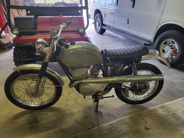 * 69? Kawasaki F3 175 - Bitsa trail bike. 68-70 vintage, missing tank, seat, side covers, etc. Have found usable replacement parts for most everything. Some stock, some not. 20HP rotary valve engine. Project in the works. $600-800 when complete.